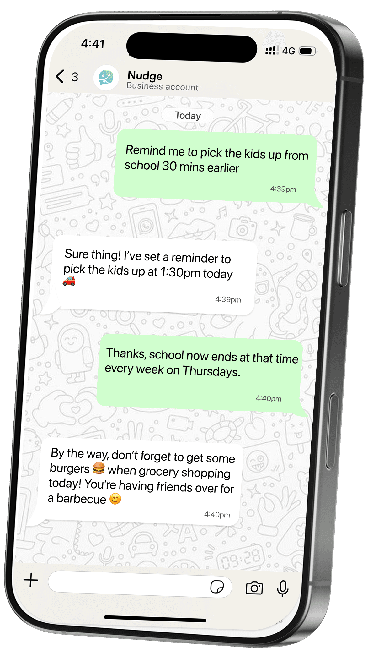 My life felt scattered across apps and notes. Nudge pulled it back into one place. And it's just right in my WhatsApp!